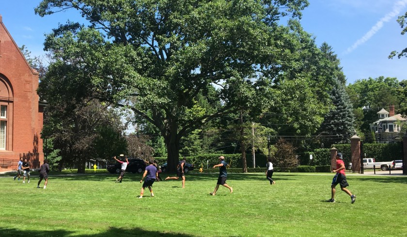 IRT’s Summer Workshop heads into it’s second week. Interns take a break from seminars during planned Wellness Day activities – hanging out on the quad and playing frisbee!